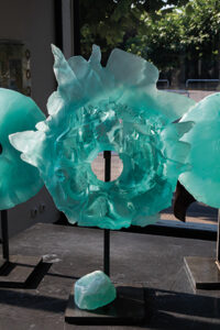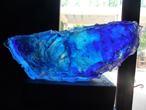 Travailler sur le déplacement, la faille, la fêlure ; plonger dans un chaos de cristal ; casser, chauffer, ressouder très lentement les blocs, pousser, repousser les pierres de verre à l’aide d’un bâton qui s’enflamme et se brise… Suspendre ce magma qui s’étire et se dresse au bord de l’abîme d’un miroir… Plus que l’œuvre réalisée et refermée, je cherche son écho, ses résonances visuelles, une ouverture véritable…