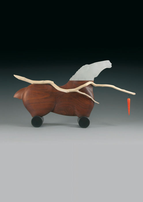 Lorsque la tête du cheval et la carotte - toutes deux en verre - ont été ajoutées, elles ont « sauté aux yeux », comme je l´avais espéré, attirant l´attention sur le thème de la pièce : nos luttes difficiles, notre poursuite des carottes métaphoriques qui nous semblent importantes, nos efforts pour ne pas lâcher prise au travail et dans la vie…