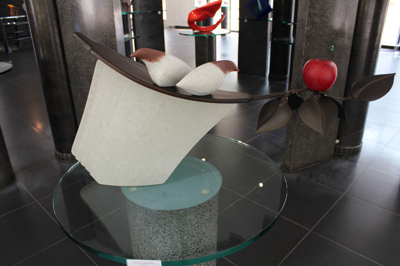 Ces dernières années, j´ai eu un double attrait pour les formes sculpturales représentatives et pour les abstraites, et je me trouve littéralement au « centre », également intéressée par deux approches stylistiques contrastantes. Je me suis également impliquée en créant des œuvres qui sont souvent des contrastes du point de vue de l’échelle (art public à grande échelle contre oeuvre sur piédestal de petite taille) puis des contrastes en termes de matériaux (acier inoxydable et granit contre acier doux, verre de fonte et bois). Je pense, en méditant sur le thème de cette année, que le « Contraste » a été une « fugue de fond » pour la majeure partie de mon travail ces dernières années.