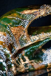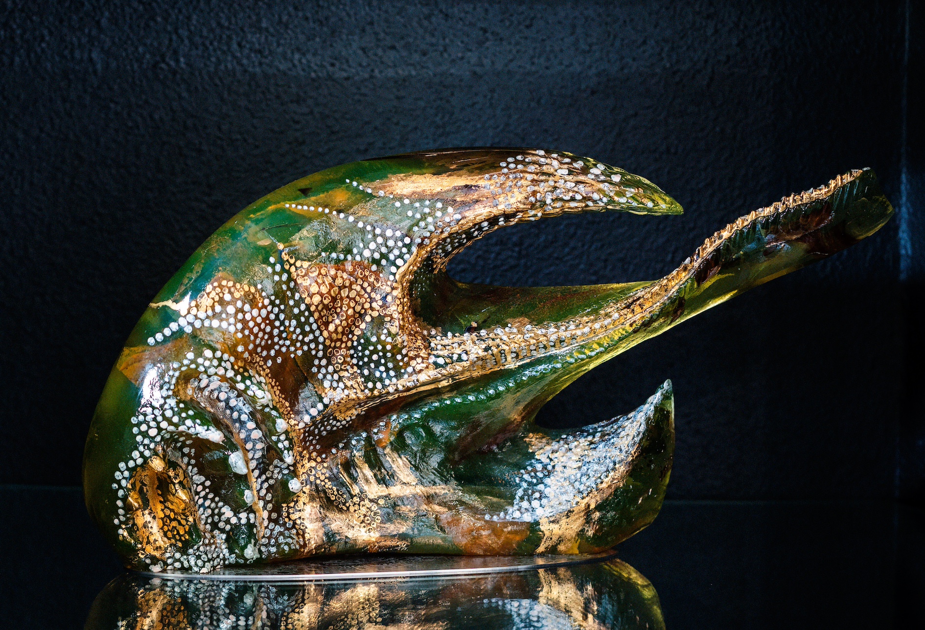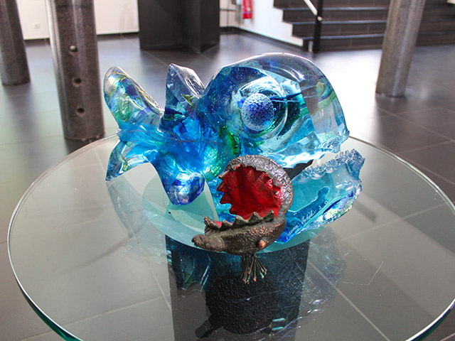 Le fond de l’océan est silencieux et sombre. Dans ce calme apparent, chaque visiteur découvre les couleurs variées et les ultrasons des discussions des êtres vivants. Ces beautés abyssales cachées attendent les porteurs de lumière pour qu’ils nous dévoilent le monde magique secret de l’océan. Le calme apparent de cet environnement peut beaucoup surprendre les visiteurs. Les couleurs luxuriantes cachent non seulement la beauté mais également divers dangers, régis par les lois de la nature. Combien de fois ces secrets ont-ils été modifiés et combien de fois se modifieront-ils encore au cours du temps ? Qui le sait...?Ce monde inspire l’œuvre de Jaromír Rybák. Comme si les couleurs et les formes de ses créations en verre étaient également cachées sous la surface et sortaient tout doucement des « entrailles » de ses œuvres.