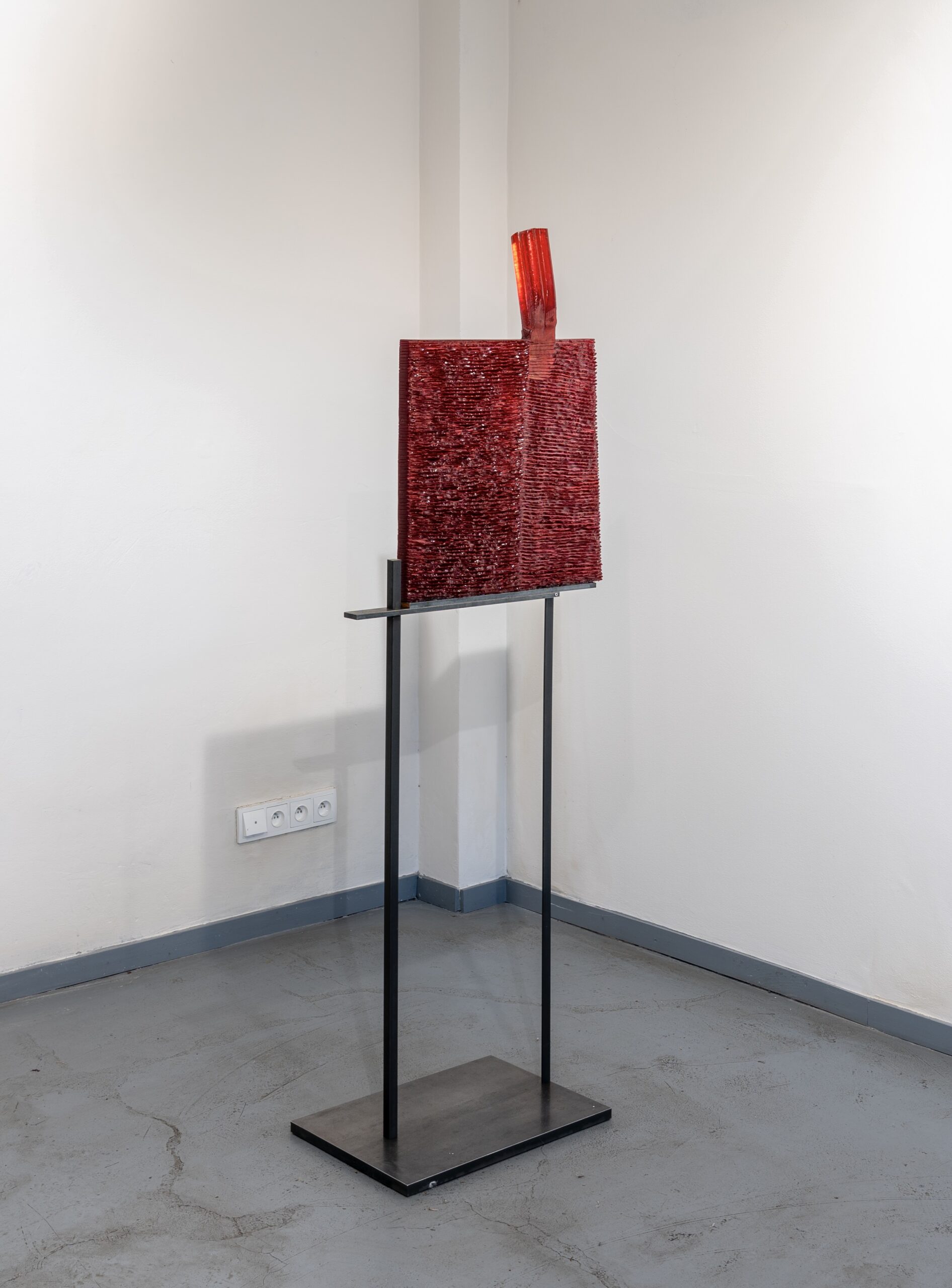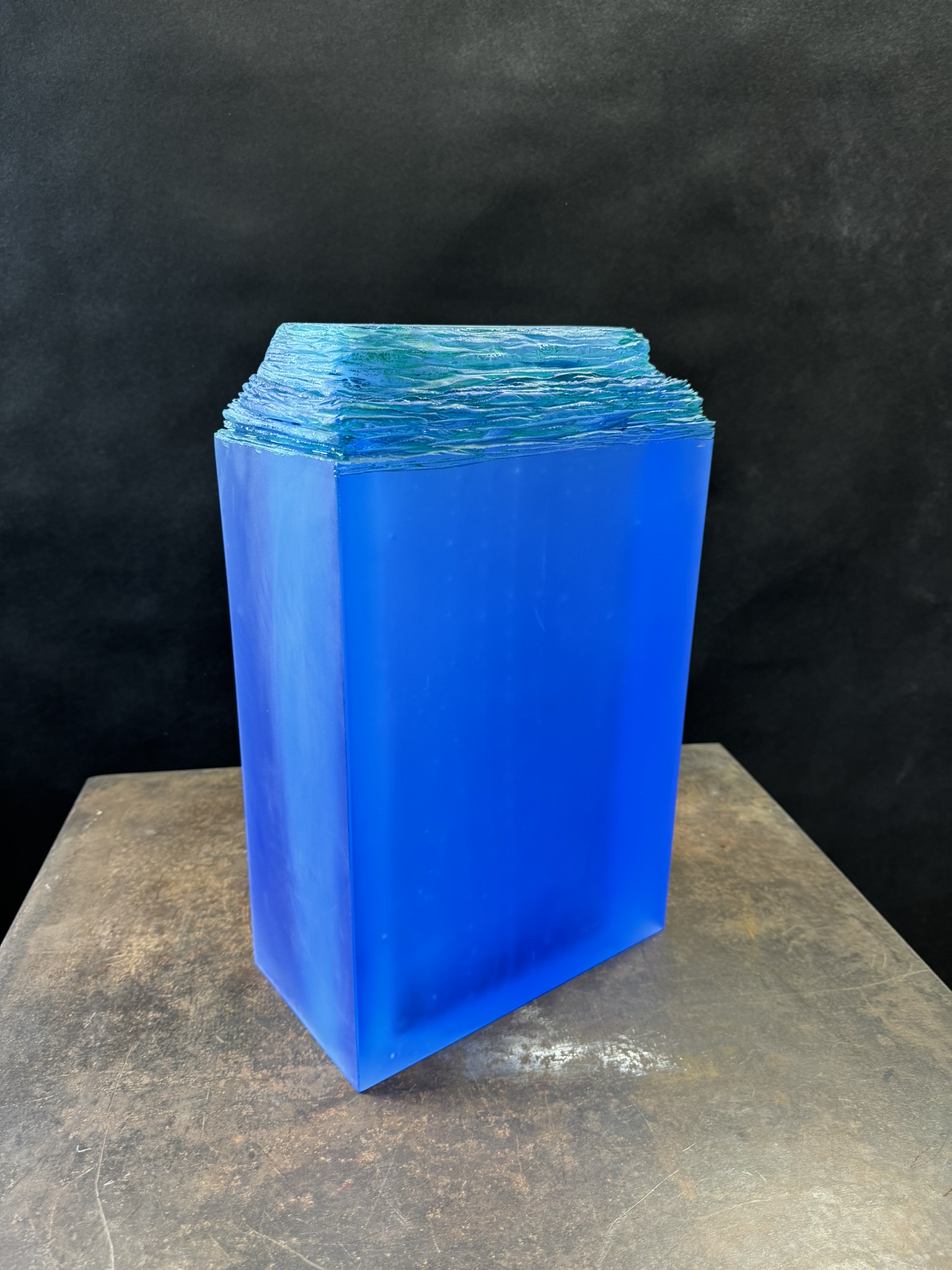 La couleur opaline, qui varie suivant l´intensité lumineuse environnante, nous dévoile à travers ses changements subtils la personnalité complexe de l´artiste, qui ne recherche pas l´effet immédiat chatoyant du matériau mais l´utilise dans son expression artistique...