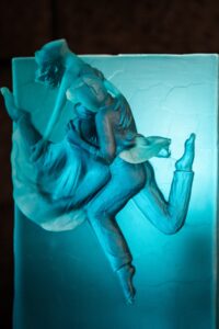 Notre collaboration fait ressortir le meilleur de chacun d’entre nous. Steve apporte une touche architecturale et son talent pour la visualisation des formes sur la planche à dessin, tandis que Leah a l’œil pour le personnage et un don pour une approche plus organique de la sculpture. L’utilisation de concepts, le dessin, la réalisation de la construction, la résolution des problèmes et la mise à profit de nos talents respectifs, pour la sculpture et l’utilisation des matériaux, ajoutent richesse et profondeur à notre procédé. Nous avons le même but et nous y arrivons grâce à des expériences et des points de vue différents qui fusionnent pour aboutir à l´expression de nos idées communes.