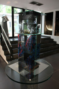 Dans l’art moderne, le verre est devenu un support exceptionnel permettant – compte tenu de ses caractéristiques remarquables – l’expression de nombreuses idées, auparavant impossibles à exprimer avec les procédés classiques et les matériaux traditionnels.Je travaille le verre, je l’aime et le hais à la fois – il vaut mieux ne pas me demander depuis combien d’années déjà !