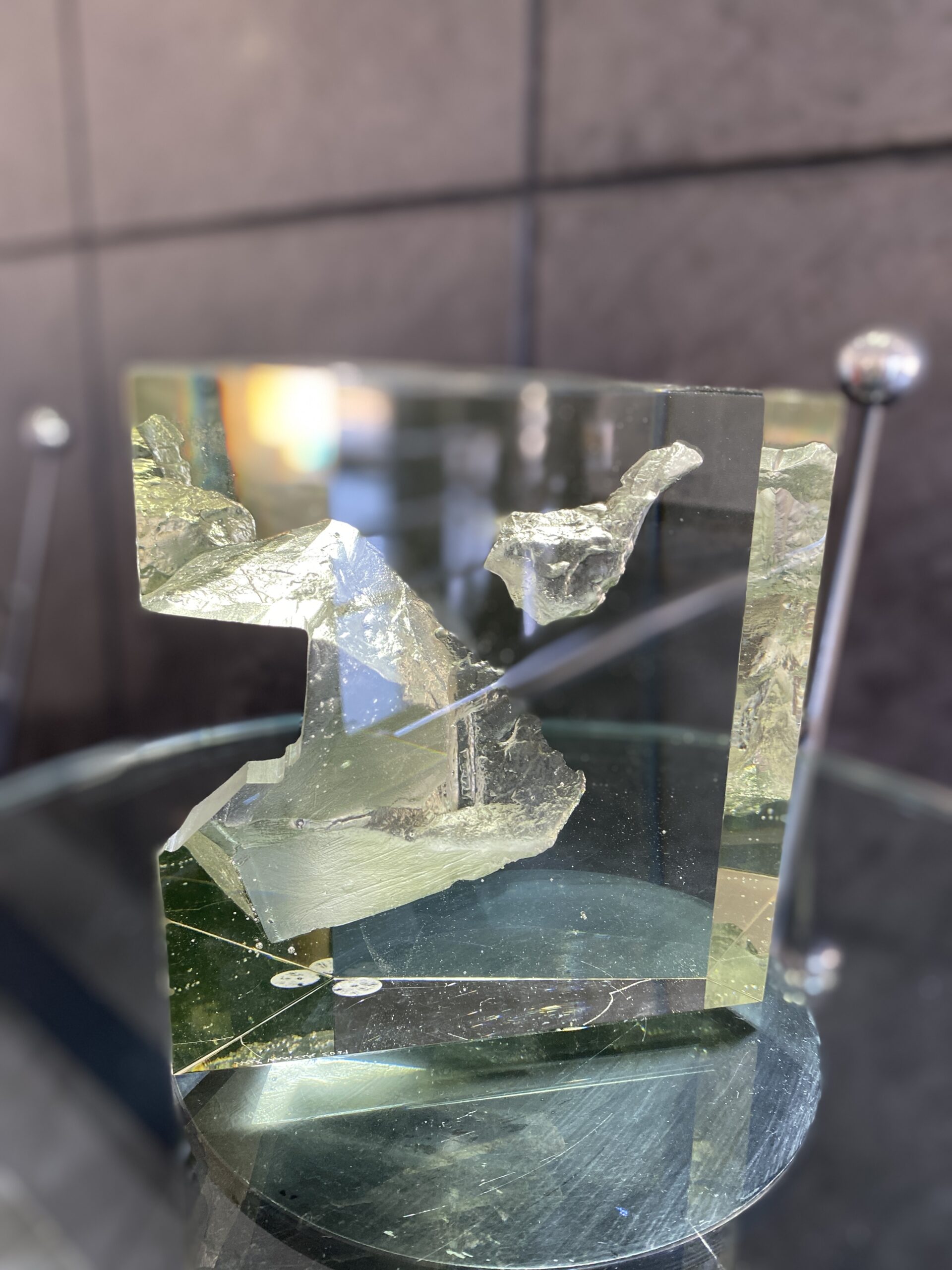 J’ai dû travailler en étroite collaboration avec mon fournisseur de matières premières. Après trois nouveaux essais infructueux, nous avons réussi à mélanger à chaud ces différents verres, sans risque pour l’avenir de la pièce.