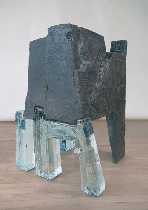 Le verre est la matière première avec laquelle je travaille : verre moulé en combinaison avec une autre matière.